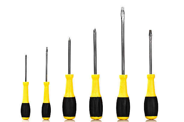 12-delars skruvmejselsats med ergonomiska handtag. Inkluderar olika storlekar och typer.